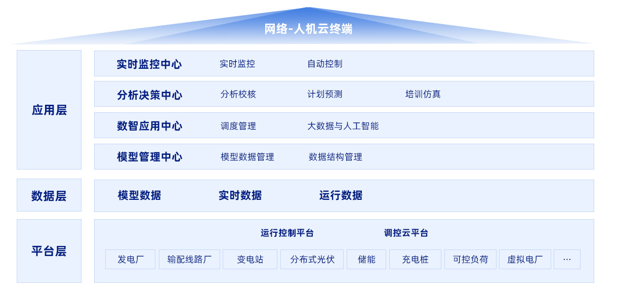和记娱乐E8000(V6.0)新型电网弹性调度控制系统基于“云原生”的弹性调控平台和运行数据中心,遵循IEC61970/IEC61968国际标准,满足国家电网新一代调度技术支持系统、南方电网公司CEP体系化规范,提供传统电网主站和新兴市场主体监控的全部功能的新一代智能调度技术支持系统。 E8000V6.0系统可以实现电网调度控制中心内部各专业应用系统的横向集成,同时将各级调度控制中心及厂站业务纵向贯通,方便与上下协同交互各类数据和服务,可为各级各类电力调控中心实现智能电网运行控制和优化运营提供整体解决方案。