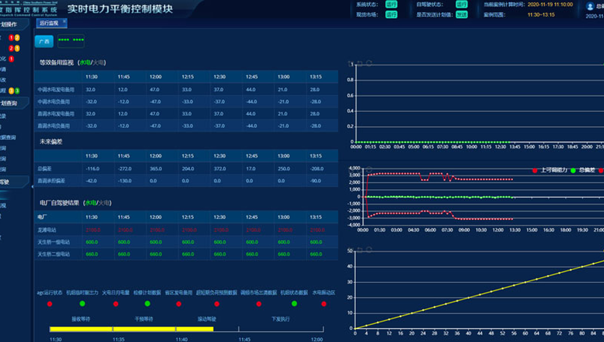 以超短期母线负荷预测数据为基础,考虑系统平衡约束、机组运行约束、电网安全约束、备用需求等各种约束条件,根据设定的偏差分配原则,按一定周期自动滚动编制未来一段时间的各类型机组发电调度计划,提升大电网驾驭及资源优化配置能力,实现实时电力平衡从人工调度为主迈向智能调度、前瞻调度。